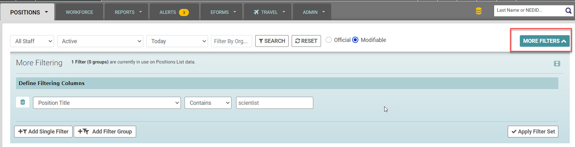 Users can run custom reports in Beacon HR using the More Filters. This feature brings up an advanced search panel, which lets you apply more granular search conditions.
