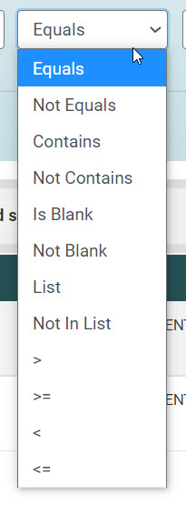 - Equals: The results must equal the data you entered. (Note the results must match the data entered exactly.)