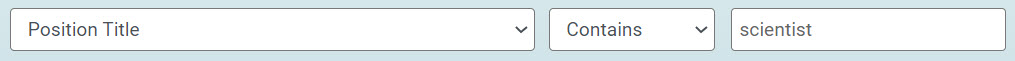 Results: employees that have a position title that contains scientist. ex Staff Scientist and Scientist Emeritus - Not Contains: The data you entered must not be found somewhere in the results.