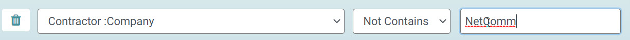 Results: All contractors that do not work for NetComm. Useful to find exclusionary data. - Is Blank: The employee does not have data in Beacon for the column you selected
