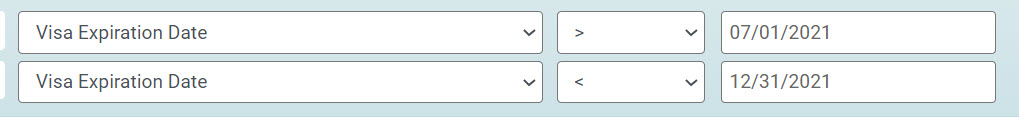 Results: All employees who have a VISA date after 7/1/2021 thru 12/31/2021