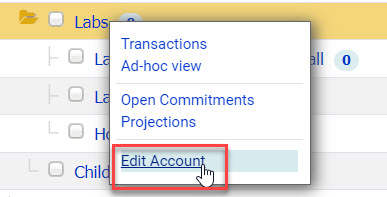 From either the main Accounts screen in Beacon Finance or the Edit View screen (found under the admin tab --> Views) right-click the account name in the data grid and select the Edit Account Title/Info option from the menu.